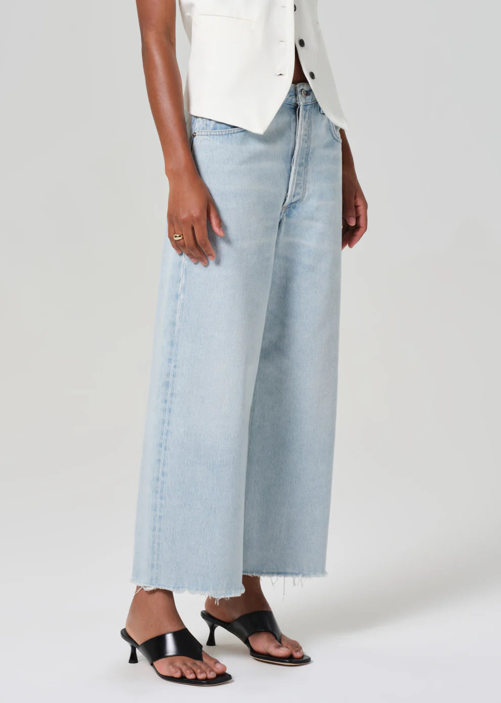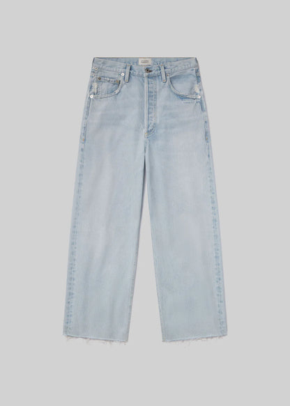 The Ayla Raw Hem Crop, inspired by a reworked vintage silhouette, features a slightly relaxed but flattering top block that transitions into a roomy leg with a raw hem finish. Perfect for warmer days, this cropped denim is crafted from 100% regenerative cotton, offering both comfort and sustainability in a timeless, versatile style. Style it effortlessly with a tucked-in blouse and sandals for a relaxed daytime look, or elevate it with a sleek heel and tailored blazer for an elevated take on casual chic.