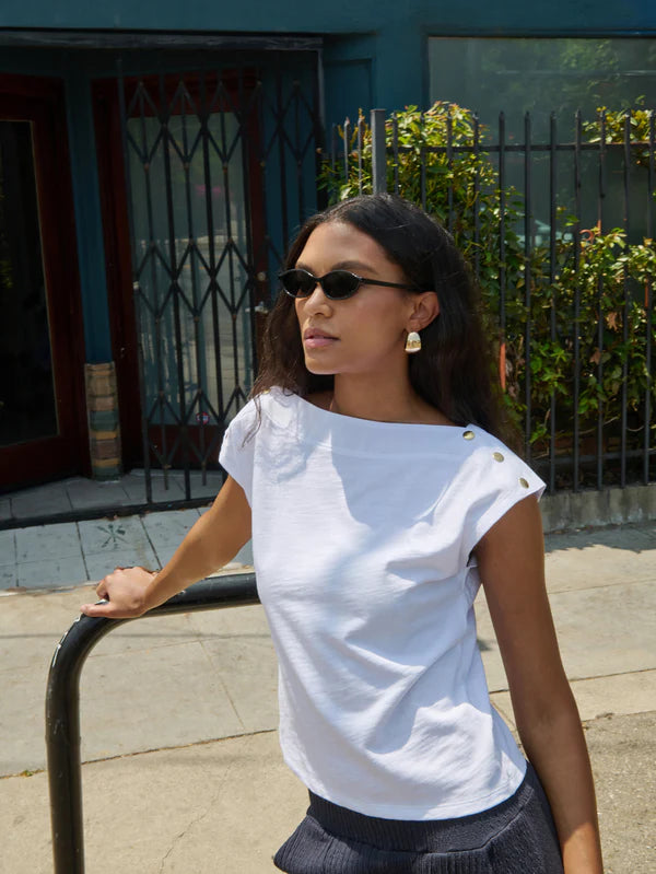 An everyday essential in our 100% cotton heavy slub, this boatneck top features gold-tone snap details along the shoulders. This one comes in Optic White.