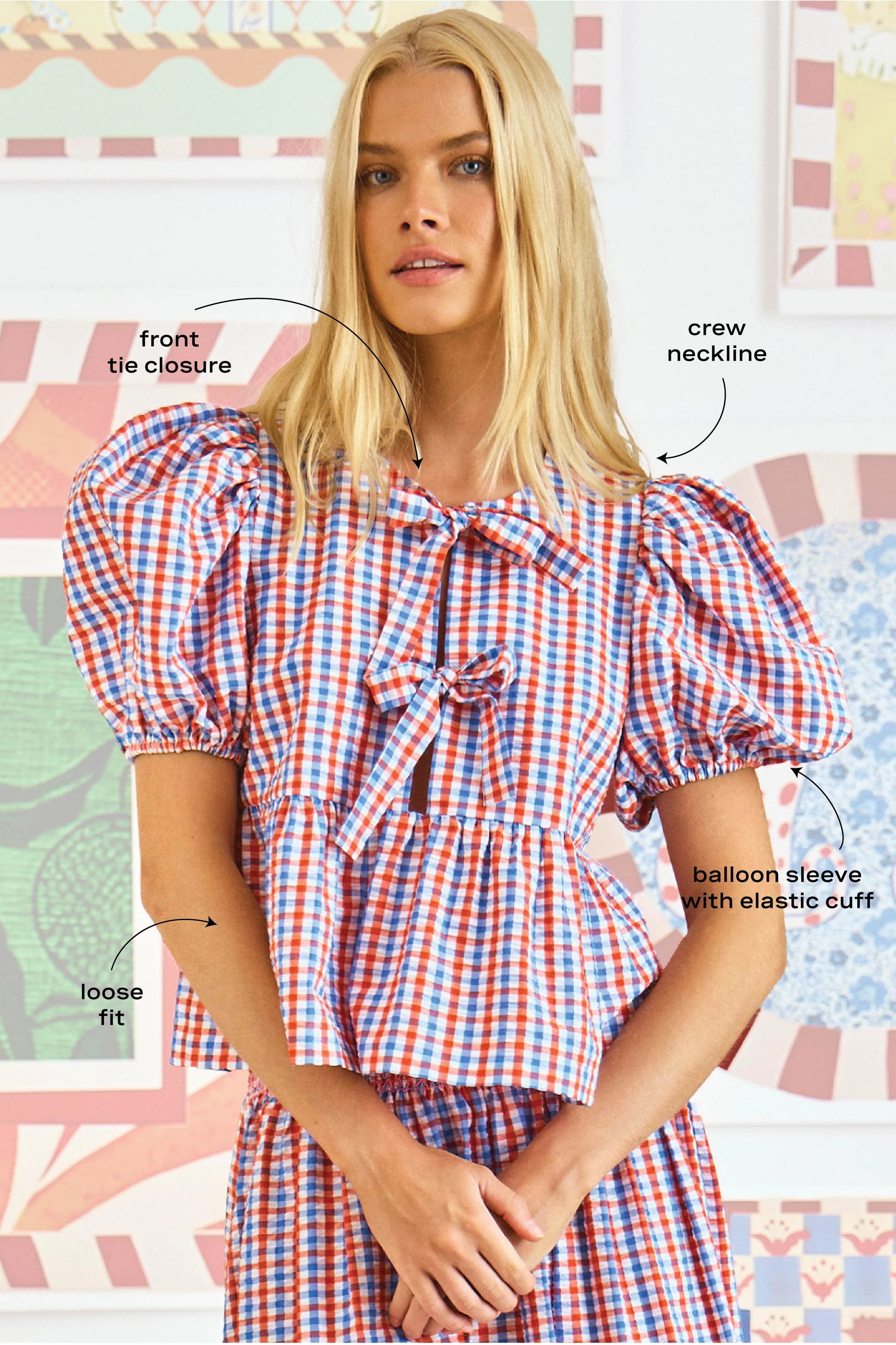 The Carly Top is one of those pieces you’ll reach for again and again—effortless, feminine, and just the right amount of playful. Designed with a relaxed silhouette, it features a classic crew neckline, full balloon sleeves with soft elastic cuffs, and a sweet front tie closure that adds a touch of charm to any look. The best part? It pairs back to the Jemma Short for a matching set that makes styling easy and fun. Whether you're heading out for brunch, packing for a weekend getaway, or just want to feel a little more put-together, the Carly is here to make getting dressed feel joyful.