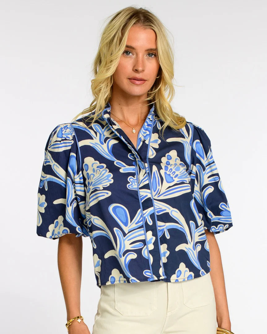 The button front Edie Top is one of our most adored styles and a basic that no wardrobe should be without. Featuring elastic cuff balloon sleeves and a covered placket, Edie looks great worn loose or tucked in with your favorite skirts, shorts or jeans.