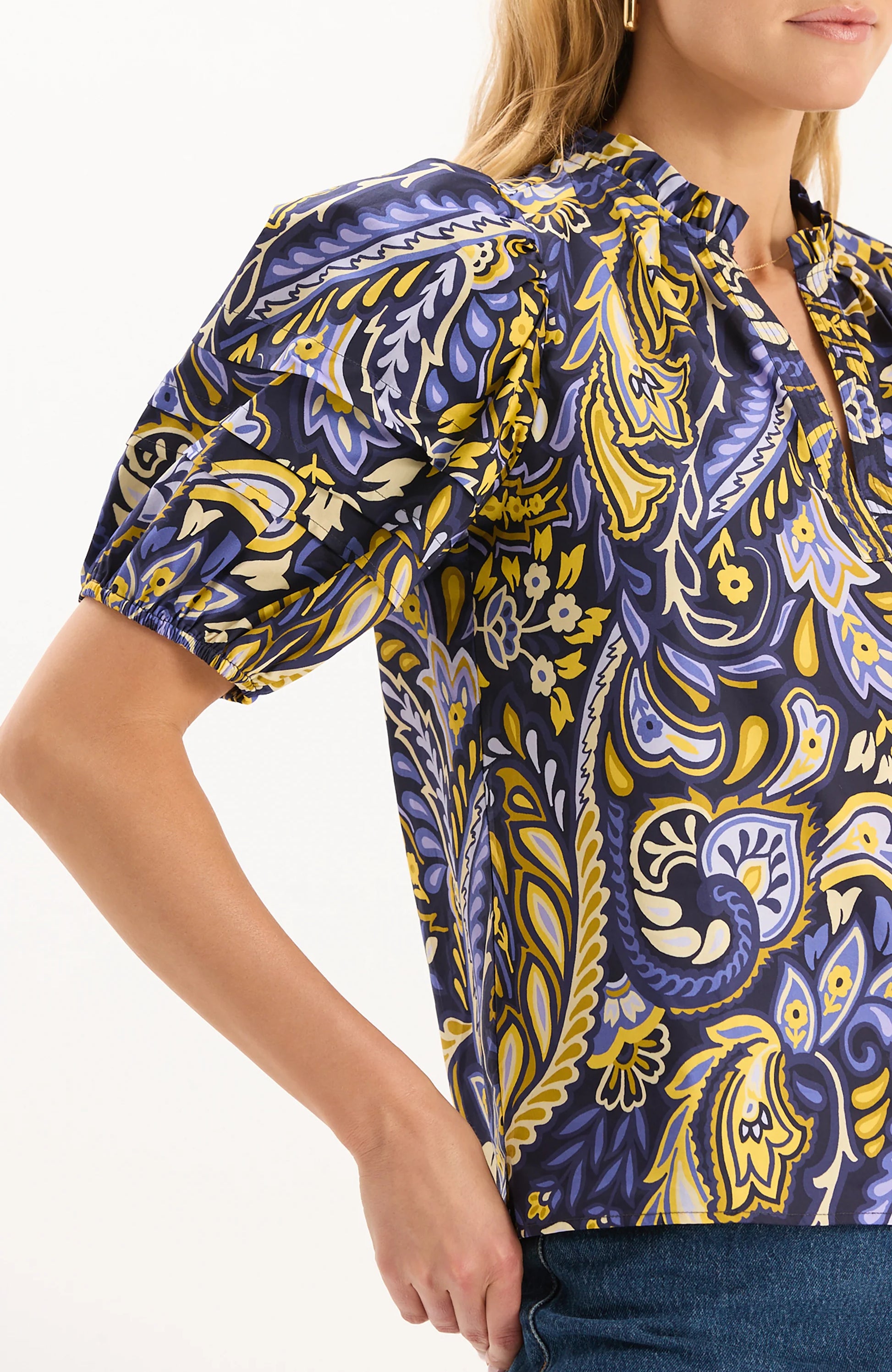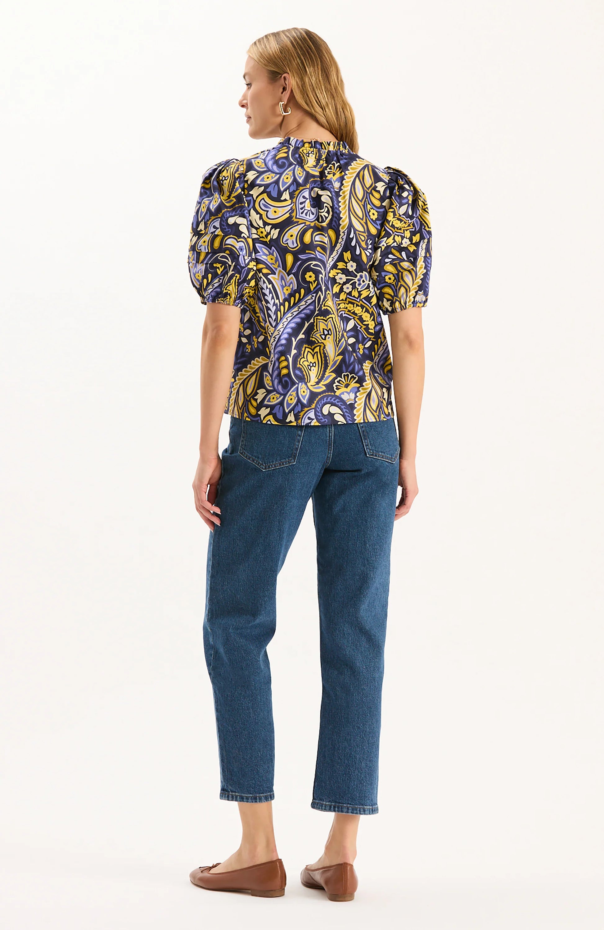 We took our best-selling Jenna Top and brought it back in our exclusive new Sugar Plum Paisley print. With a rounded notch neck and puff sleeves, this cotton blouse will instantly elevate any look.