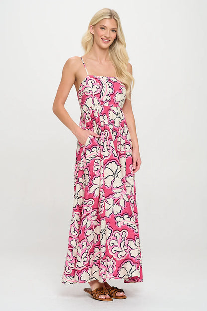 Turn every stroll into a statement in the Rosy Bloom Maxi Dress. Featuring a romantic floral print inspired by blooming island gardens, this breezy silhouette is tailored for sun-kissed escapes and resort evenings. The softly smocked bodice hugs comfortably before flowing into a relaxed, tiered skirt that moves with ease. Spaghetti straps and a flattering square neckline add a feminine finish. Style it with strappy sandals and gold jewelry for dinner al fresco or barefoot for beachside wanderings. Wherever you wear it, this dress captures the effortless elegance of a Mediterranean getaway.
